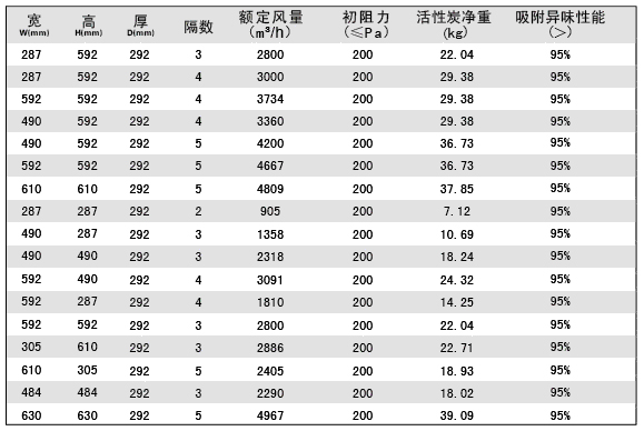 活性炭高效過濾器規格尺寸參數: