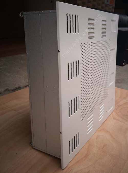 A、高效送風(fēng)口靜壓箱體,材質(zhì)有冷軋鋼板(A3板)與不銹鋼板。箱體是用作吊在天花上與四周庫板相結(jié)合密封,也是高效送風(fēng)口四件套主體。