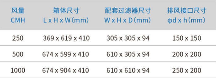 高效排風口及過濾器標準尺寸參數: